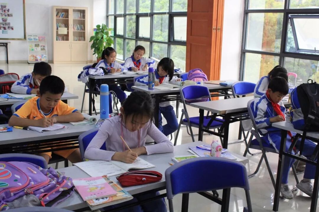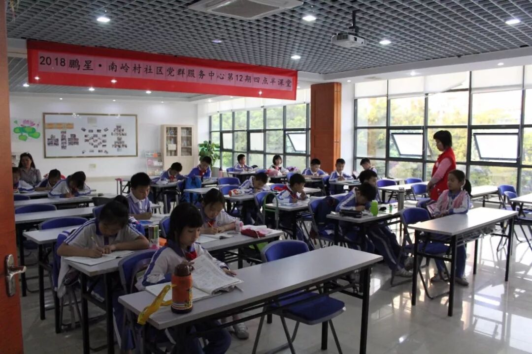 此时正值梅雨季,每周一至周四放学后,多名小学生背着书包陆续的走进南岭村社区党群服务中心四点半教室,先在签到处填下自己的姓名与来到课堂的时间,再找到自己的座位,轻快的拿出书本与练习册,开始完成自己的作业。