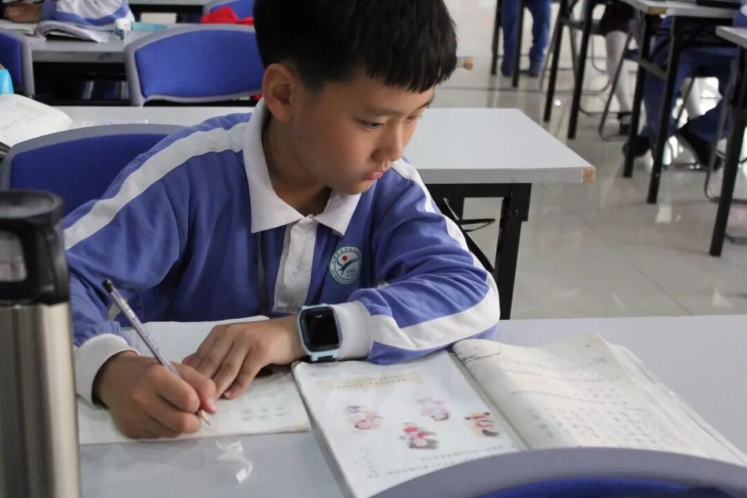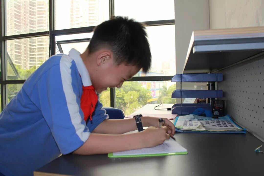 四点半至五点半是学员在四点半课堂中自主完成课后作业的主要时间段,课堂被学员落笔的沙沙声和低声交流问题的声音填满。