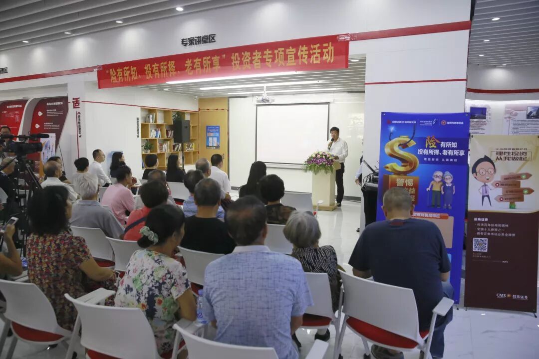 随着老龄化社会加剧和老年群体的日渐庞大,老年人的理财需求也不断增加,从定期储蓄到理财产品、股票及基金投资,到处都能看到老年人理财的身影,“老年理财时代”已经到来。然而,老年人普遍缺少风险防范意识,易受到营销手段的诱惑,因此老年人理财知识普及越发重要。在深圳证监局、深圳证券交易所、深圳证券业协会,以及深圳市老年协会的支持下,招商证券联合万科于2018年9月26日在招商证券实体投资者教育基地开展以“险有所知、投有所择、老有所享”为主题的投资者权益保护知识讲座。