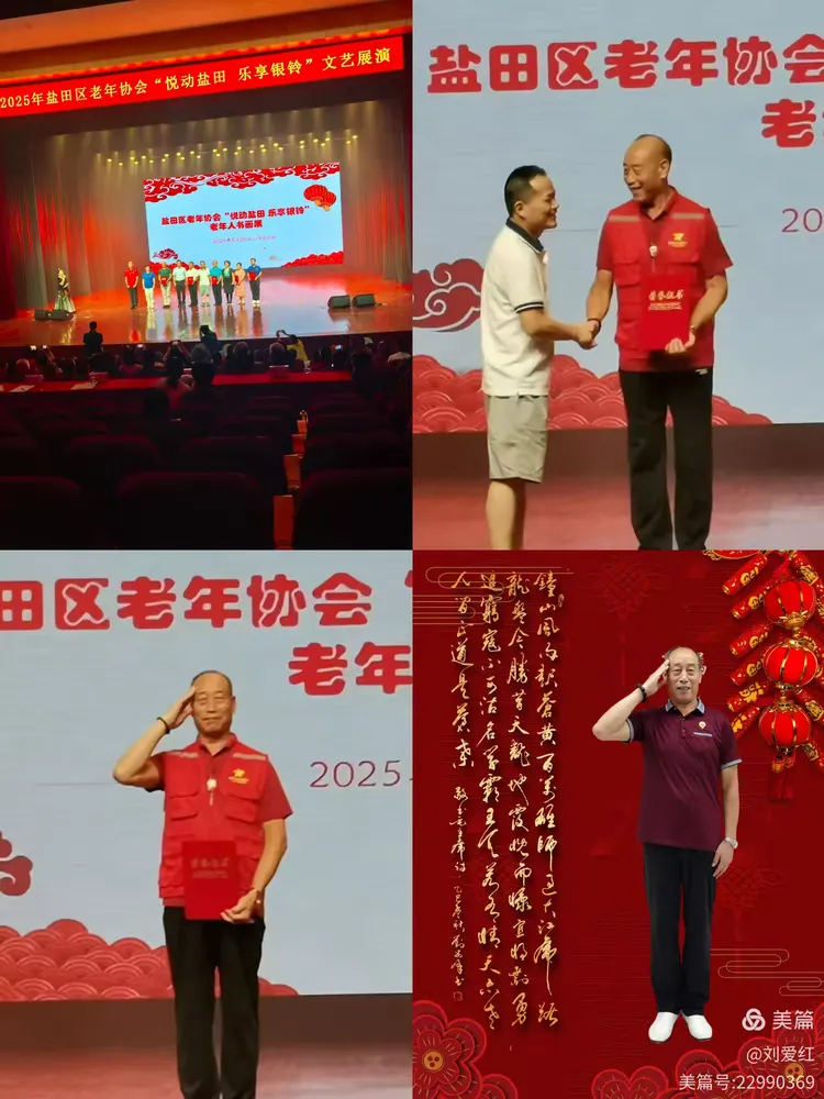 倚山老协喜讯传!刘西峰书法作品斩获“悦动盐田 乐享银铃”二等奖,尽显银发人才风采