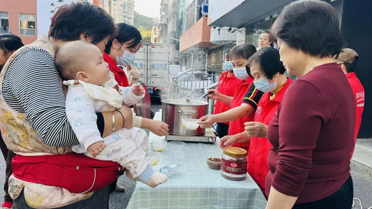 活动现场,最具人气的当属暖食区的煮姜茶和煮汤圆摊位。志愿者们早早就位,精心准备了新鲜的生姜、红糖、汤圆等食材。随着滚烫的热水注入锅中,生姜与红糖的香甜气息迅速弥漫开来,一碗碗热气腾腾的姜茶被递到居民手中,驱散了冬日的寒冷;另一边,圆润饱满的汤圆在沸水中翻滚,出锅后裹上香甜的糖霜,咬上一口软糯香甜,满满的幸福感涌上心头。老人们捧着热饮暖心暖胃,孩子们围着摊位翘首以盼,志愿者们的热情服务让每一位居民都感受到了社区大家庭的温暖。