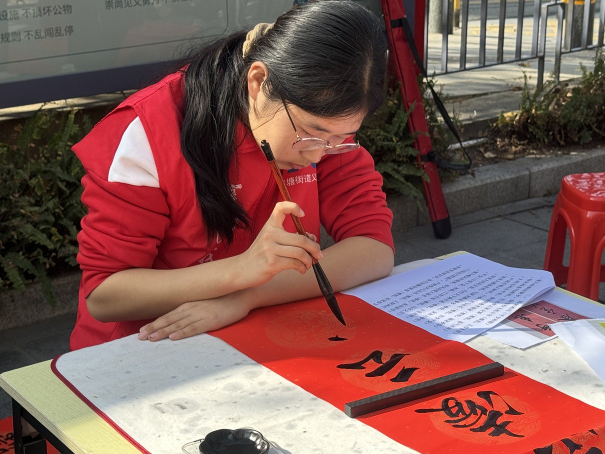 此次活动共书写春联100副、福字200个,全部被居民“一抢而空”,每一幅作品都承载着满满的新春祝福,传递着浓浓的邻里温情。“手写的春联最有年味,比印刷的多了份温度和心意,贴在家里特别有意义。”一位领到春联的居民笑着说道。