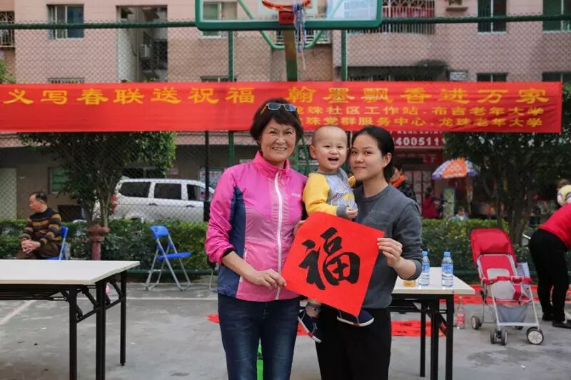 “每年快要过年的时候,我就盼着你们过来,我就喜欢手写的春联,这才有年味。”一位阿姨拿着写好的对联,满心欢喜。布吉老年大学义写春联活动已坚持开展5年,据悉,今年的义写春联活动将会覆盖到17个社区。书法班的师生们乐于奉献、不辞辛苦,每年为社区居民送去春联1000多副,通过笔墨为社区居民送去新春最美好的幸福,深受居民喜爱。