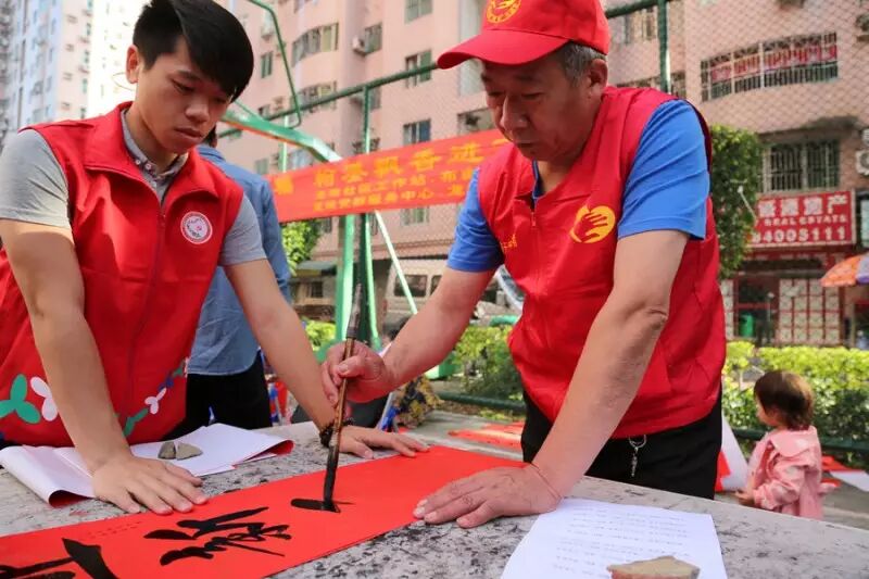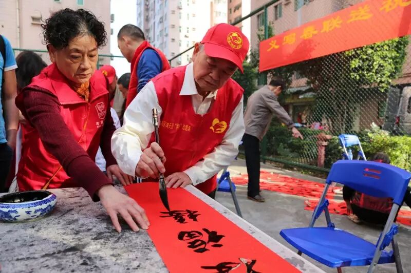 随着鸡年的脚步越来越近,近日,布吉街道满天星“两老”志愿服务队10多名书法家现场挥毫泼墨,先后在茂业、龙珠等社区免费为居民义写春联送祝福。