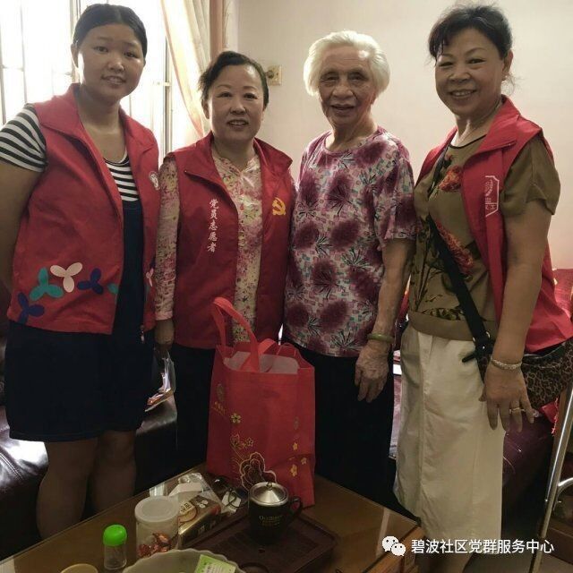 2017年9月27日,国庆.中秋双节来临之际,碧波社区党委、居委会、老协以及碧波社区党群服务中心联合开展了一场“和谐邻里关爱长者”碧波社区慰问活动,主要探访慰问东纵老战士、社区独居、空巢及孤寡老人。