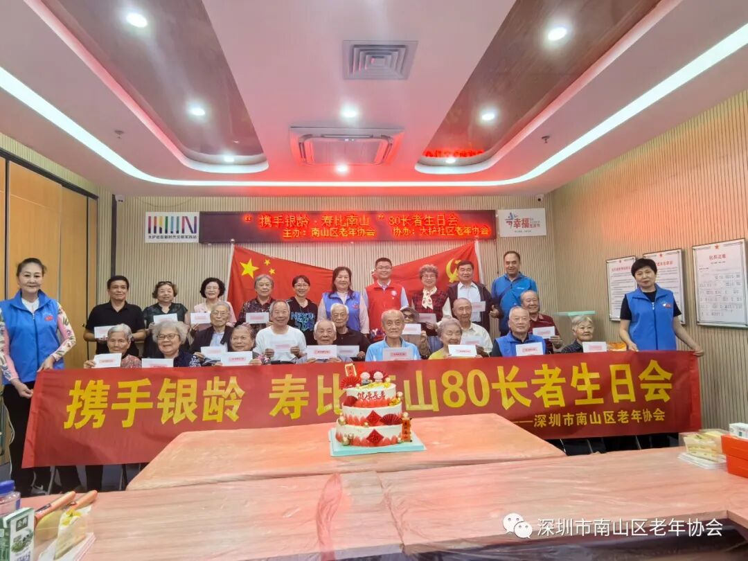 为大力弘扬中华民族孝老爱亲传统美德,营造养老孝老敬老社会氛围。2023年12月12日,由深圳市南山区老年协会主办,南山区蛇口街道大铲社区老年协办的“银龄携手,寿比南山”80长者生日会活动在大铲社区党群服务中心举办。深圳市南山区老年协会会长武智慧、副会长王桂香、秘书长梁保利、大铲社区党委书记亓世龙、蛇口消息报主编工会主席兼新媒体中心黄涛参加了此次“银龄携手,寿比南山”80长者生日会活动。
