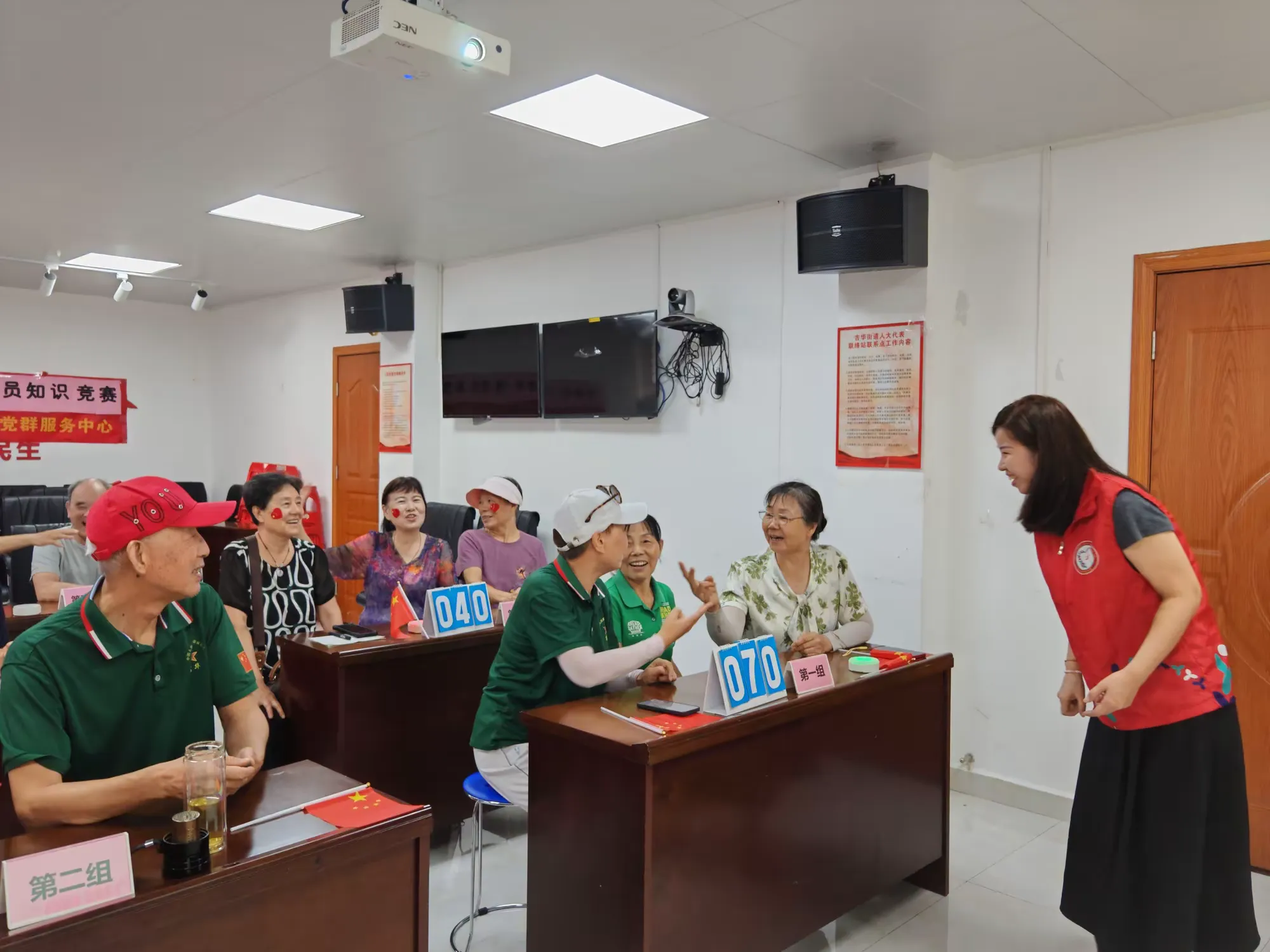 为隆重庆祝中华人民共和国成立76周年,深入推进党史学习教育,2025年9月26日上午,在水径社区党委的指导下,水径社区党群服务中心创新活动形式,成功举办党员知识竞赛活动。活动特邀14位社区党员与普通居民代表共同组队,齐聚一堂。通过知识竞答、红色拼图、合唱献礼等环节,不仅重温了红色记忆,更在 “党群协作、邻里共融” 的氛围中凝聚了深厚的党性力量与社区情谊。