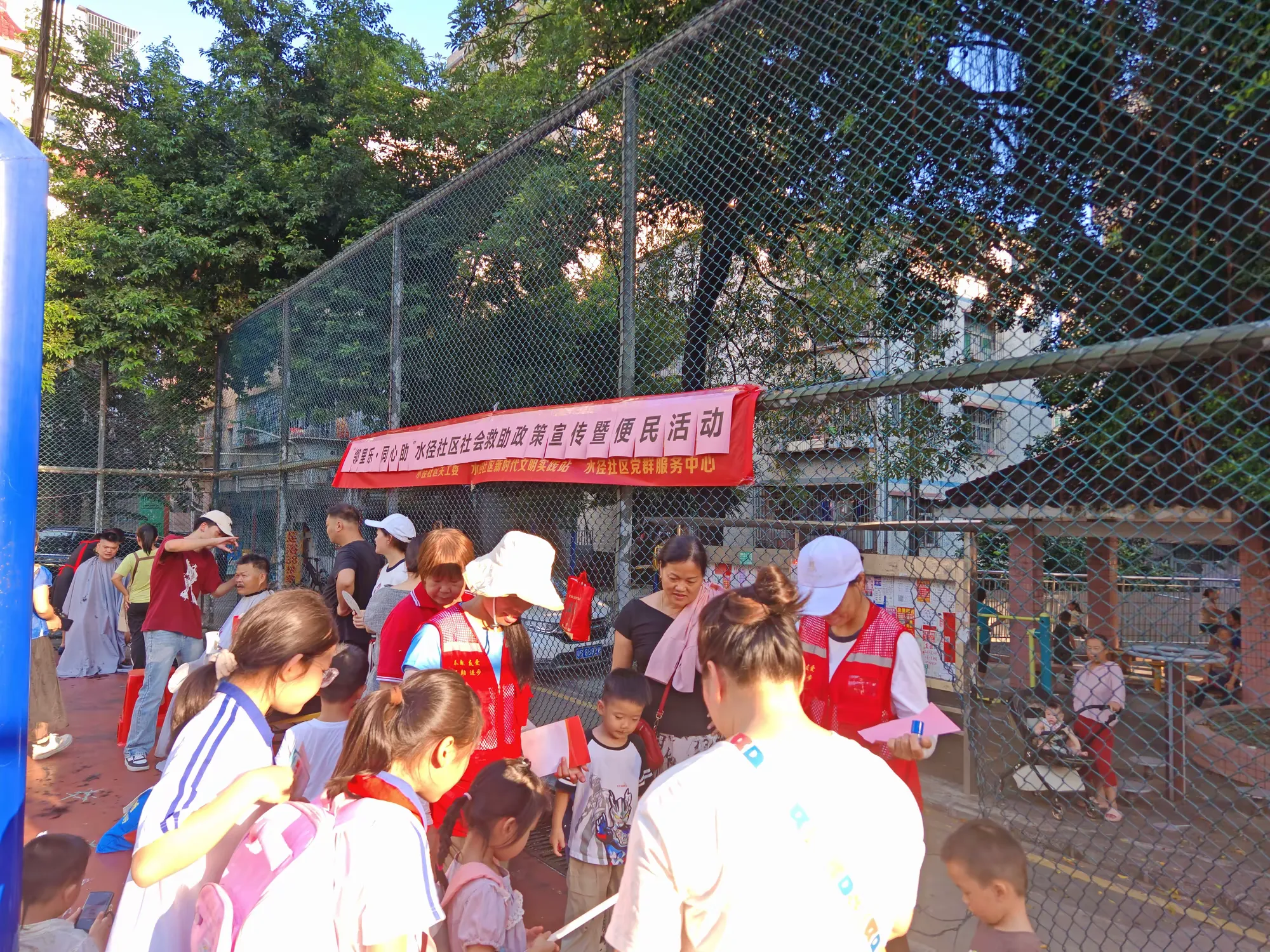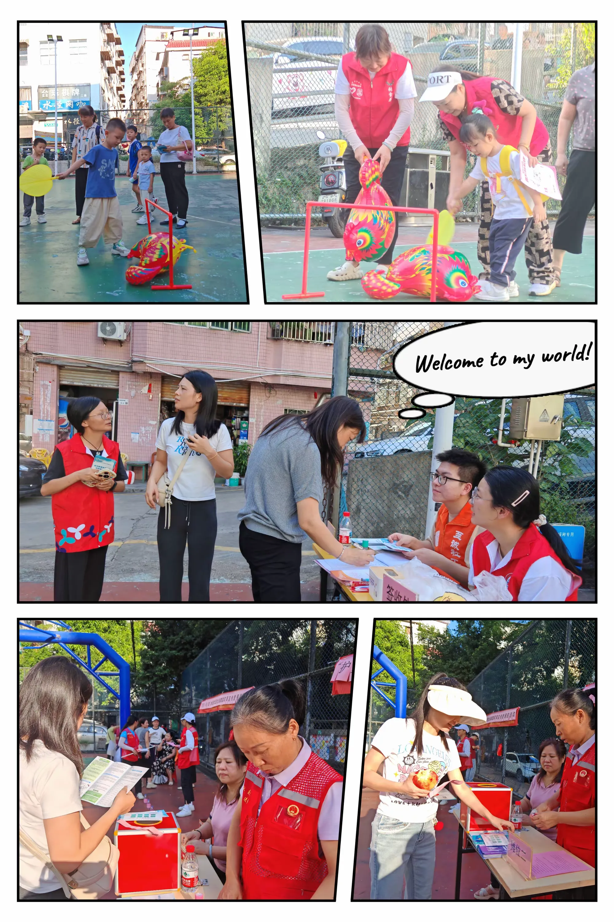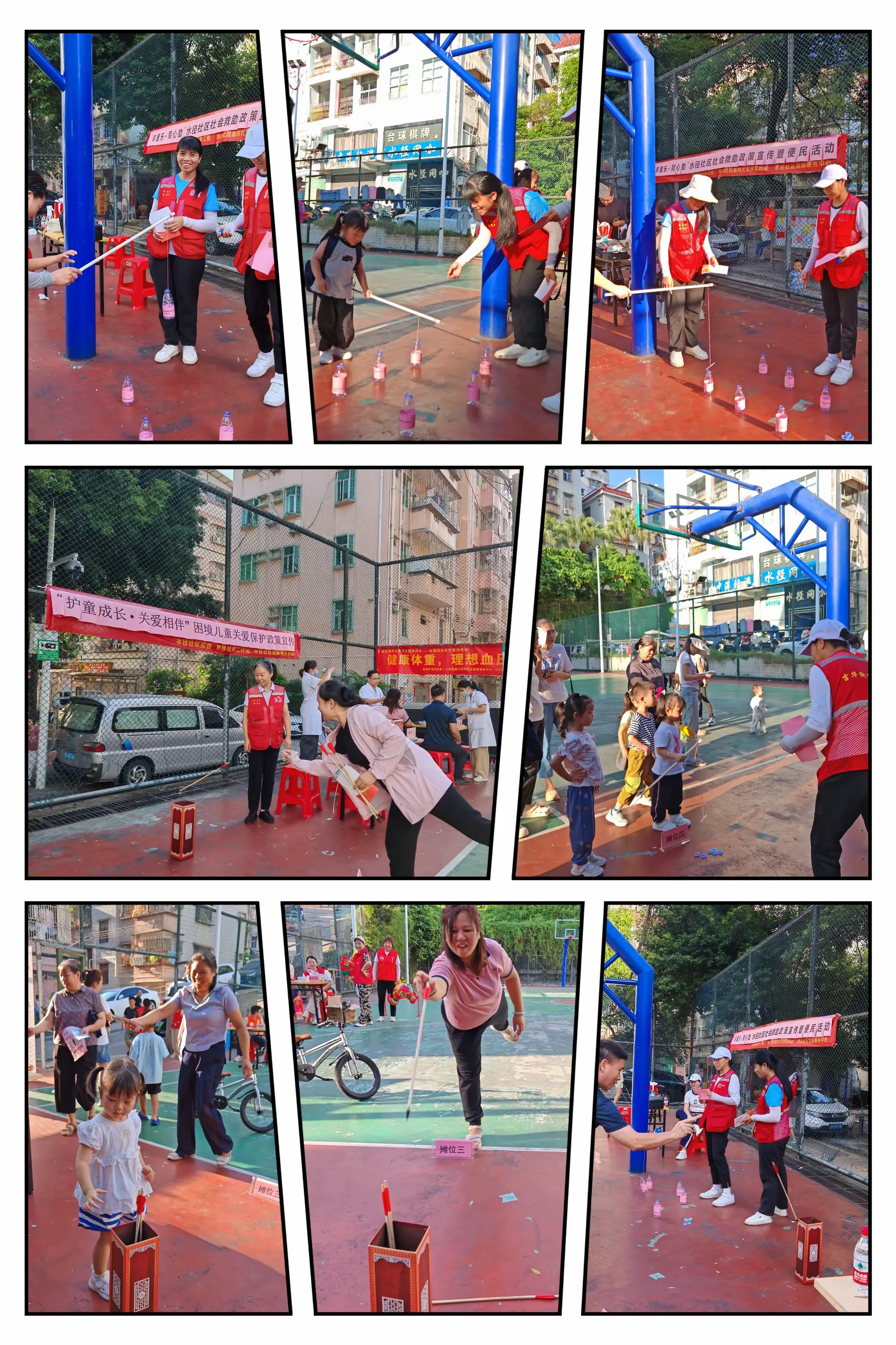 第一个摊位点为:“护童成长·关爱相伴”困境儿童关爱保护政策宣传活动火热开展。活动现场设置设置的盲盒抽抽乐和赶鸡入笼两个游园项目,以寓教于乐的形式,为居民打开了了解困境儿童关爱保护政策的窗口。志愿者们发放着宣传折页,而参与的居民则一边抽着盲盒,一边认真地阅读着困境儿童关爱保护的相关政策,了解帮助困境儿童的渠道有哪些。在趣味游戏赶鸡入笼互动区域中,参与者手持特制的“赶鸡棒”,小心翼翼地将一只只象征着困境儿童的“小鸡玩偶”赶入预设的“安全笼”中,这在无形中传递了将困境儿童从困境中“解救”出来,给予他们安全与关爱的深刻寓意。通过这样的互动体验,居民们对困境儿童面临的挑战有了更直观的认识,也激发了他们参与关爱行动的热情。
