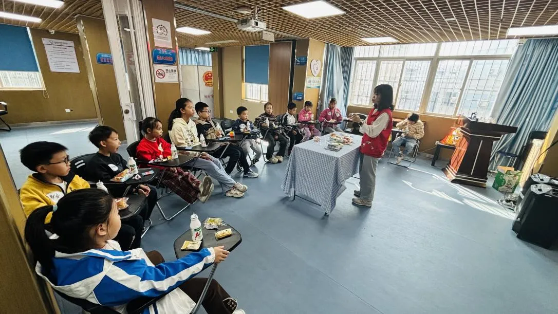 活动伊始,“大树和松鼠”破冰游戏拉开序幕。参与者分组扮演“大树” 与 “松鼠”,随着社工“猎人来了”“着火了”“地震了”等指令响起,“松鼠” 们灵活穿梭寻找新“树洞”,“大树”们也迅速重组队形,现场欢呼声、奔跑声此起彼伏指令灵活重组、穿梭互动,这场趣味十足的互动游戏不仅快速消除了孩子们之间的陌生感,更让大家在协作与欢笑中放松身心,为后续的深度交流奠定了融洽氛围,活动现场还精心准备了曲奇饼、奶糖、AD 钙奶等丰富茶点,让孩子们在轻松惬意的环境中放松身心、畅所欲言。
