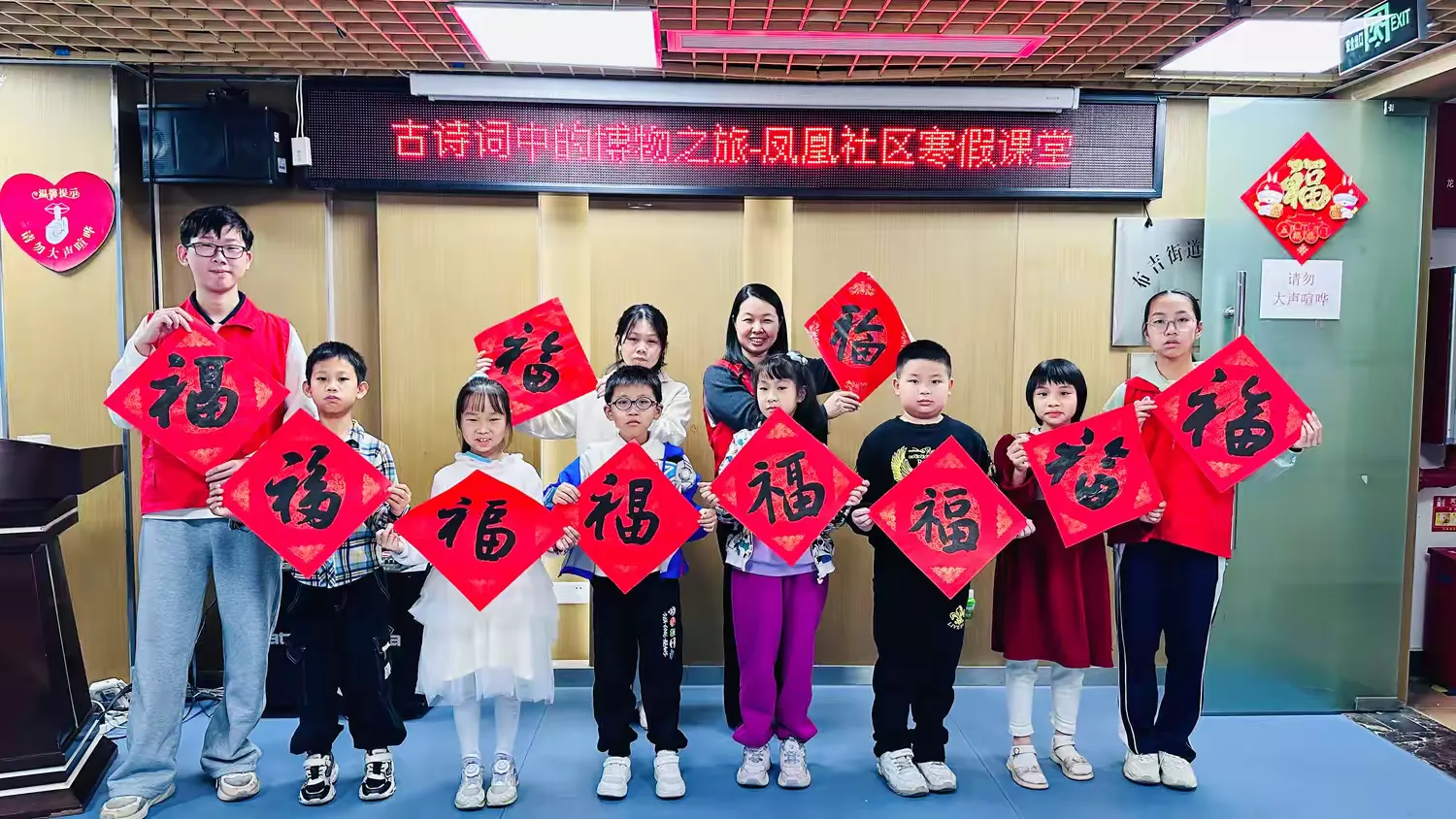 2026年2月10日,在凤凰社区党委的指导下,由社区关工委联合党群服务中心精心组织的“古诗词里的博物学之旅”儿童青少年寒假课堂圆满收官。本次活动创新性地将古诗词学习与博物学探索、环保实践相融合,为孩子们带来了一场跨越时空、连接自然与文化的沉浸式学习体验,成功构筑起温暖的“家门口成长乐园”。